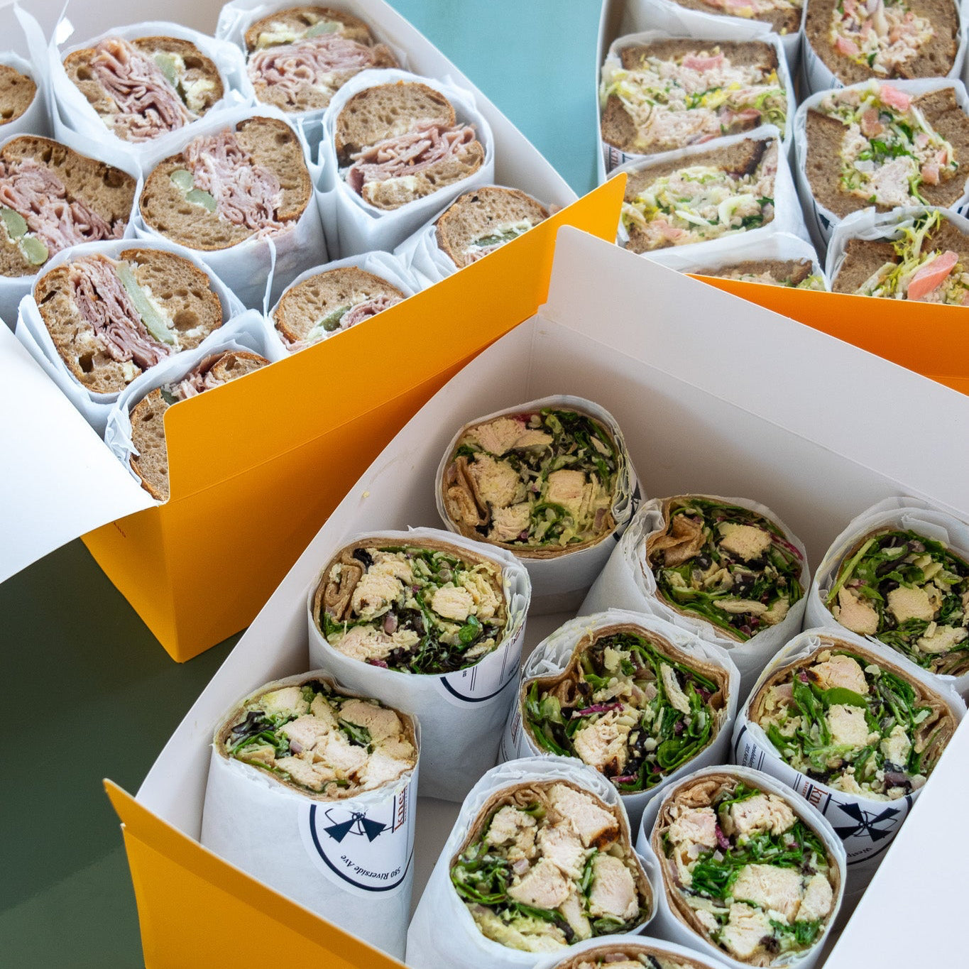 Trays of sandwiches or individually packaged lunch boxes